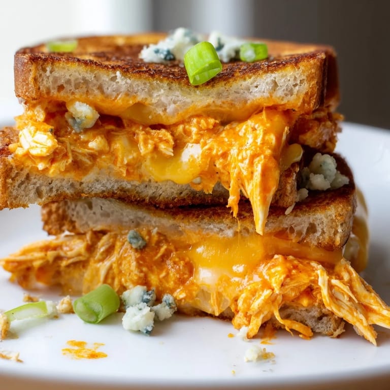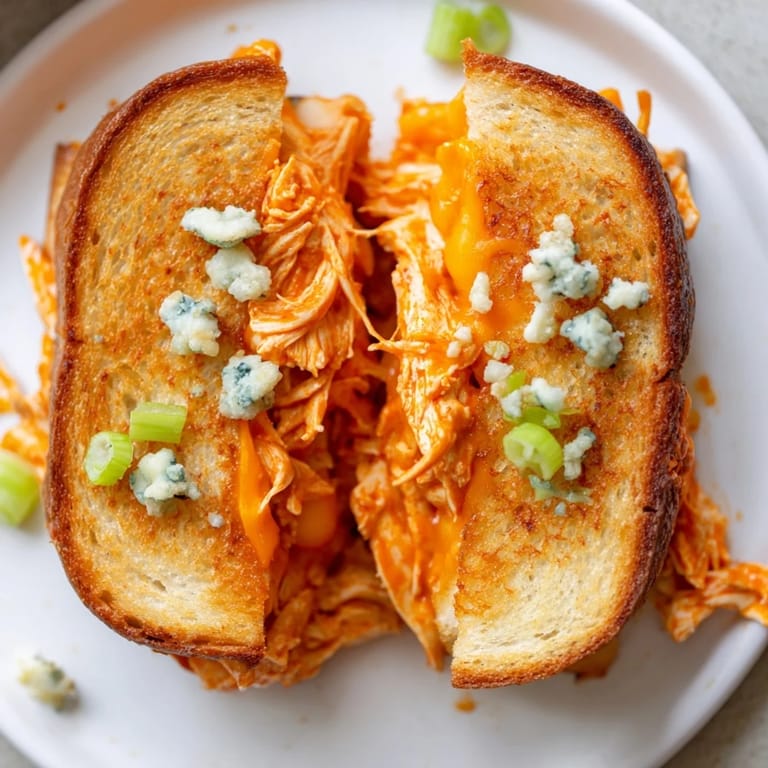 Save Pin I stumbled onto this combination during a particularly chaotic Tuesday when my fridge held nothing but leftover buffalo wings from the weekend and a lonely loaf of sourdough. The first bite had me leaning over the counter, genuinely surprised at how the tangy heat played against that molten cheese. Now it is the sandwich I make when comfort food needs to feel like an occasion instead of just dinner.